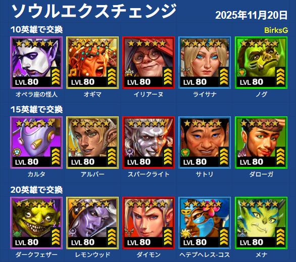 - 英雄は交換元の英雄のレベルに関わらず、レベル1-1の状態で受け取ります。