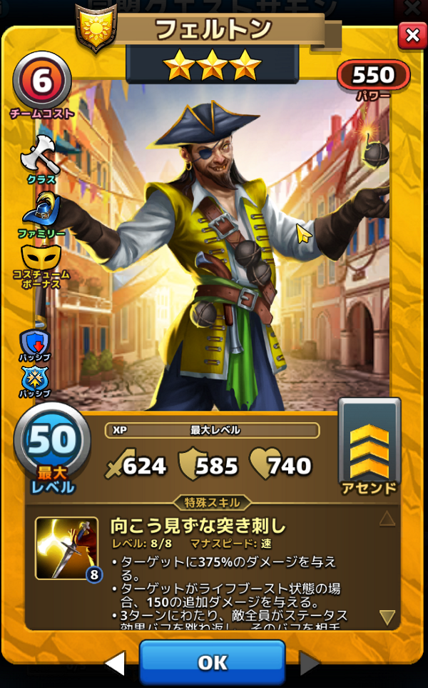 コスチュームボーナスとは? コスチューム持ち英雄のステータス値は固定の「ベース値」+「コスチュームボーナス」の合算です。ゲーム内でもコスチュームボーナス込で表示されていますので、サモンポータルなどではベースではなくボーナス込のステータス値です。