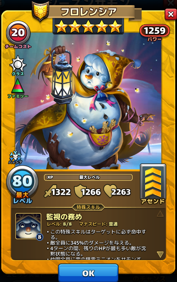 | 攻撃力 | 27% | 57% | 60% | 25% | 28% | 30% | 2% | 45% | 28% | 57% | 43% | 29% | 3% | 34% | 28% | 25% | 22% | 40% | 7% | 15% | 17% | 7% | 15% | 17% | 19% | 13% | 29% | 50% | 75% |