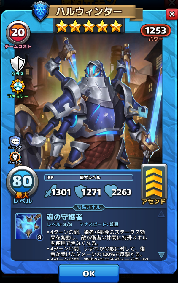 | 防御力 | 25% | 57% | 60% | 25% | 28% | 30% | 2% | 45% | 28% | 57% | 43% | 29% | 3% | 34% | 28% | 25% | 20% | 40% | 7% | 15% | 17% | 7% | 15% | 17% | 19% | 13% | 29% | 50% | 75% |