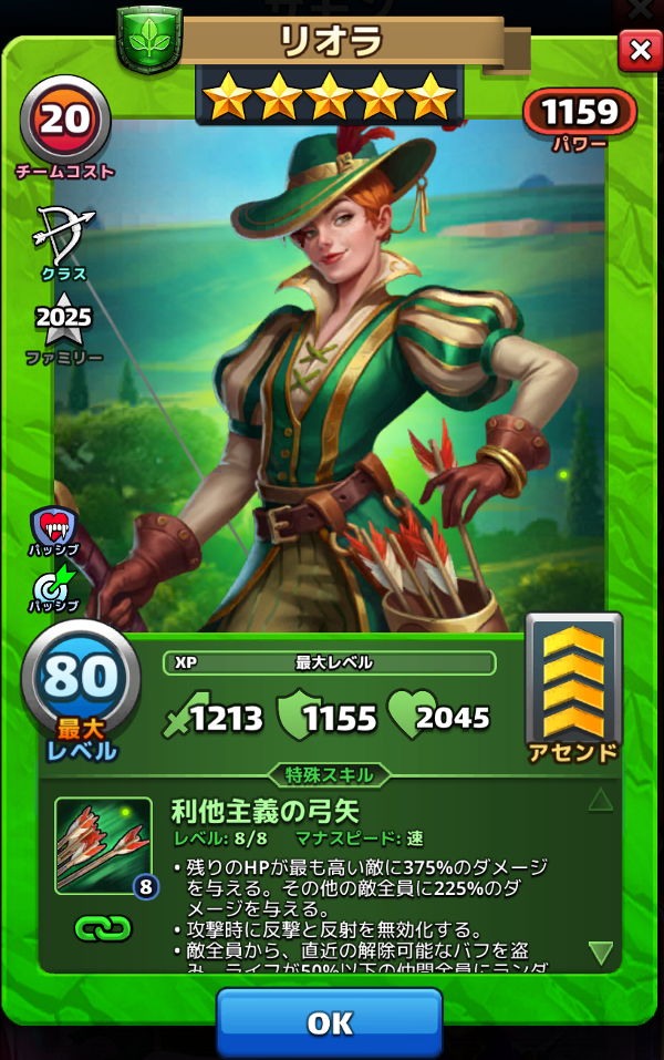 攻撃・防御・ライフを一般的によく使われる優先順位でテンプレート表示します(優先度の高いアビリティに黄色オーラを表示) アビリティの選択をせずにガイドだけ表示させたい場合は、「ガイドだけ表示」のチェックボックスをつけてから各ガイドのボタンを選択してください。 ※アビリティの選択後でも、ペアで左右の入れ替えが可能です。 ※英雄によっては追加でボタンが特殊な優先順位が表示されている場合があります(リガルドのコスチューム用など) ※コスチュームボーナスはカンストとして算出しています。 ※リセットを押すと選択を初期化します ※数値が更新されなかったり表示がおかしいと思われる場合は、ガイドを選択し直すかページ自体を再読み込みしてください。 |