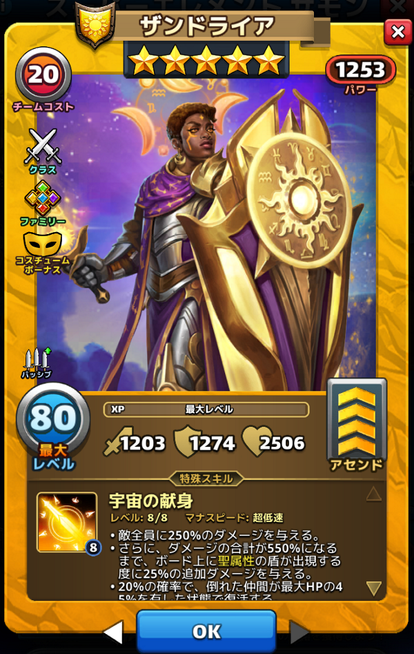 攻撃・防御・ライフを一般的によく使われる優先順位でテンプレート表示します(優先度の高いアビリティに黄色オーラを表示) アビリティの選択をせずにガイドだけ表示させたい場合は、「ガイドだけ表示」のチェックボックスをつけてから各ガイドのボタンを選択してください。 ※アビリティの選択後でも、ペアで左右の入れ替えが可能です。 ※英雄によっては追加でボタンが特殊な優先順位が表示されている場合があります(リガルドのコスチューム用など) ※コスチュームボーナスはカンストとして算出しています。 ※リセットを押すと選択を初期化します ※数値が更新されなかったり表示がおかしいと思われる場合は、ガイドを選択し直すかページ自体を再読み込みしてください。 |